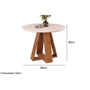 Mesa de Sala Jantar Celeste c/ Tampo Madeirado Vidro Redondo 103x103cm Cedro/Off White - DJ Móveis