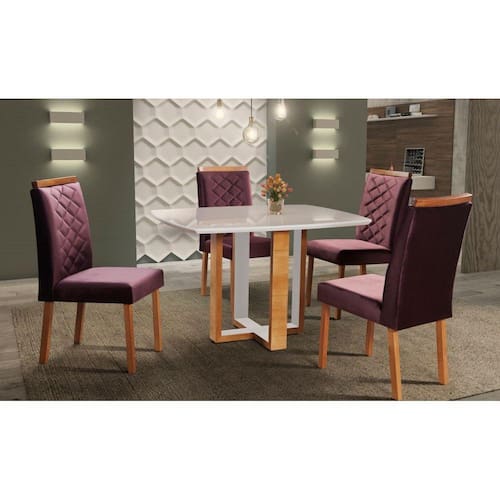 Sala de Jantar Completa com 4 Cadeiras 1,40x0,90 metros - Atlas Milão - Art Salas
