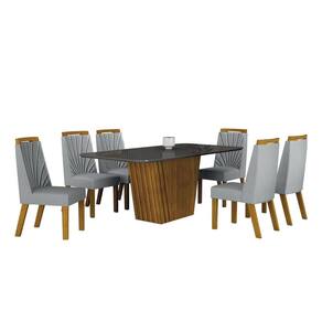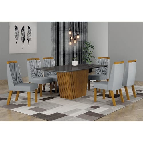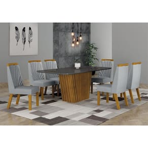 Sala de Jantar Completa com 6 Cadeiras 1,80x0,90m - Liz - Leifer Móveis Para uma sala de jantar receptiva e agradável, é preciso apostar nos móveis certos, sejam eles para as refeições do dia a dia ou para as confraternizações ao lado de familiares e amigos. Este conjunto esbanja modernidade na estrutura e design minimalista, tampo com bordas curvas, cadeiras com revestimento em tecido. Esta linda Sala de Jantar tem características ideais para dar um upgrade na sua decoração, de quebra, reunir todo mundo para momentos mais intimistas e divertidos. Confira e aproveite! Faz parte do anúncio: 1 Mesa de Jantar Liz 1,80x0,90 6 Cadeiras Liz Obs. Objetos de decoração não inclusos Particularidades da Mesa: Características: - Vidro serigrafado; - Tampo copo; - Estrutura em MDF; - Base com detalhe ripado; Particularidades da Cadeira: Características: - Bordado no encosto; - Aplique curvo superior; - Base e aplique em MDF; - Assento e encosto com espuma D28; Dimensões da Mesa: Altura: 76 centímetros Largura: 1,80 metros Profundidade: 90 centímetros Dimensões da Cadeira: Altura: 97,5 centímetros Largura: 44 centímetros Profundidade: 59 centímetros Informações Importantes:. -Produtos podem apresentar diferenças de tonalidades entre a foto na tela e o produto real, devido a calibração de cor de tela. -Limpar com flanela ou pano macio. Não utilizar álcool. Não utilizar produtos abrasivos ou corrosivos. -Nós prezamos pela qualidade da entrega em primeiro lugar, trabalhamos com transportadoras altamente selecionadas e os melhores materiais de embalagem. -A montagem é de total responsabilidade do comprador. Antes de comprar, verifique o espaço disponível para a montagem. -Certifique-se de que o produto caiba em elevadores e vãos de escadas, não fazemos içamentos. Quaisquer despesas deste tipo ficam a cargo do cliente -Garantia de 3 meses contra defeitos de fabricação. Marca: Não Informado