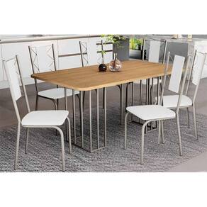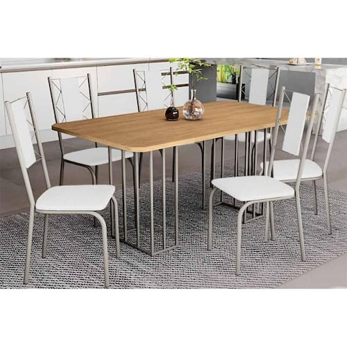 Sala de Jantar Completa Duina c/ Tampo de Madeira 160cm e 6 Cadeiras Lisboa Niquel/Freijo - Courano Branco - Kappesberg Abaixo segue os produtos do KIT: Sala de Jantar Completa Duina c/ Tampo de Madeira 160cm e 6 Cadeiras Lisboa Niquel/Freijo - Courano Branco - Kappesberg