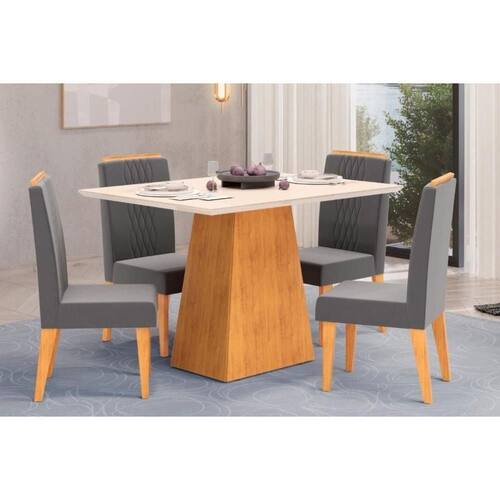 Sala De Jantar Completa Dulce Tampo Madeirado C- Vidro Reto 120x90cm E 4 Cadeiras Lia Cedro-off White - Suede Lunar - Dj Móveis - Branco