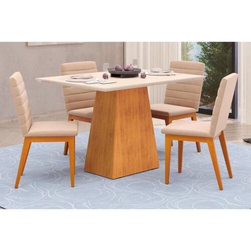 Sala De Jantar Completa Dulce Tampo Madeirado C/ Vidro Reto 120x90cm E 4 Cadeiras Zoe Cedro/off White - Ipe/suede Creme - Dj Móveis