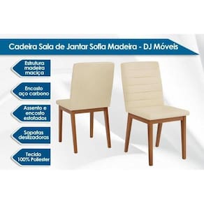 Cadeira Sala de Jantar Sofia Madeira Kit 2 un Ipe/Suede Creme - DJ Móveis