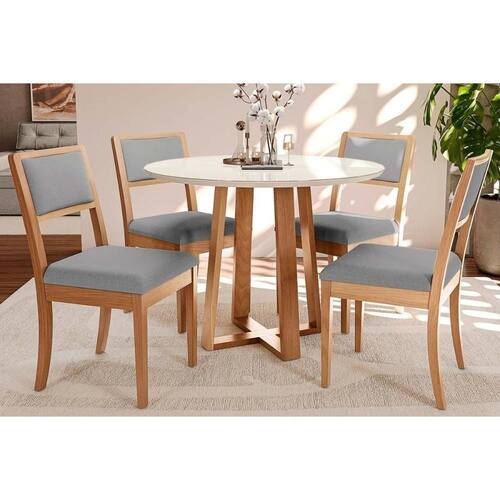 Sala De Jantar Completa Duna Tampo Madeirado C- Vidro 105x105cm E 4 Cadeiras Alice Carvalho-off White-vidro Off White - Linho Cin - Kappesberg - Branco