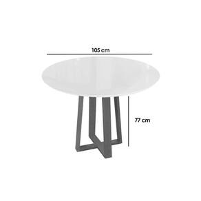 Dimensões(Cm): Comprimento(Profundidade): 105cm x Largura: 105cm x Altura: 3cm Material de Estrutura - Estrutura em MDF Tipo de Acabamento da Pintura - Fosco Tamanho do Tampo - 105x105 Espessura da Estrutura do Tampo - 30 Tipo de Formato Tampo da Mesa - Tampo Redondo