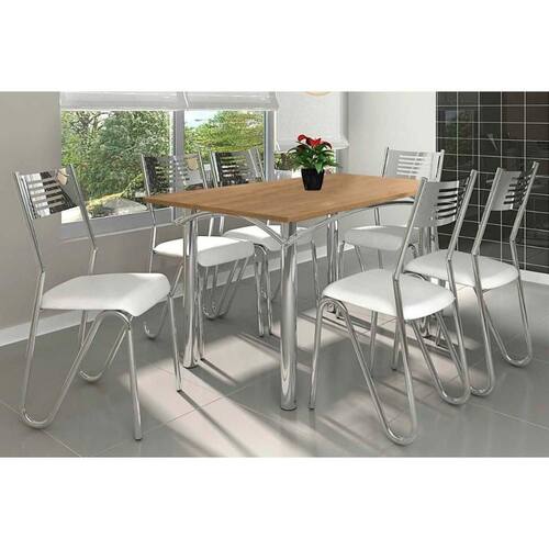 Sala de Jantar Completa Elba c/ Tampo de Madeira 160cm + 6 Cadeiras Nápoles Cromada/Branco 106 - Kappesberg Abaixo segue os produtos do KIT: Sala de Jantar Completa Elba c/ Tampo de Madeira 160cm + 6 Cadeiras Nápoles Cromada/Branco 106 - Kappesberg