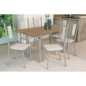 Sala de Jantar Completa Elba c/ Tampo de Madeira 160cm e 6 Cadeiras Florença Niquel/Nogueira - Courano Branco - Kappesberg Abaixo segue os produtos do KIT: Sala de Jantar Completa Elba c/ Tampo de Madeira 160cm e 6 Cadeiras Florença Niquel/Nogueira - Courano Branco - Kappesberg
