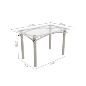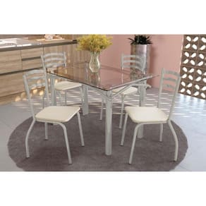 Sala de Jantar Completa Elba c/ Tampo de Vidro 120cm e 4 Cadeiras Portugal Niquel - Courano Bege - Kappesberg