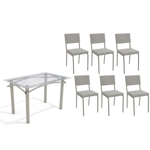 Sala de Jantar Completa Elba c/ Tampo de Vidro 120cm e 6 Cadeiras Zaria Niquel - Boucle Cinza - Kappesberg Abaixo segue os produtos do KIT: Sala de Jantar Completa Elba c/ Tampo de Vidro 120cm e 6 Cadeiras Zaria Niquel - Boucle Cinza - Kappesberg