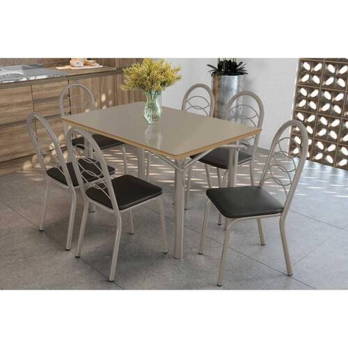 Sala de Jantar Completa Elba Tampo Madeirado c/ Vidro 120cm e 6 Cadeiras Holanda Niquel/Freijo Bronze - Courano Preto - Kappesberg Abaixo segue os produtos do KIT: Sala de Jantar Completa Elba Tampo Madeirado c/ Vidro 120cm e 6 Cadeiras Holanda Niquel/Freijo Bronze - Courano Preto - Kappesberg