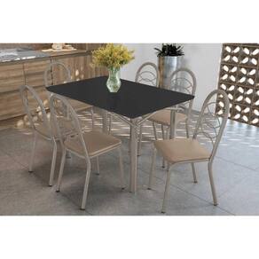 Sala de Jantar Completa Elba Tampo Madeirado c/ Vidro 120cm e 6 Cadeiras Holanda Niquel/Preto - Courano Bege - Kappesberg Abaixo segue os produtos do KIT: Sala de Jantar Completa Elba Tampo Madeirado c/ Vidro 120cm e 6 Cadeiras Holanda Niquel/Preto - Courano Bege - Kappesberg