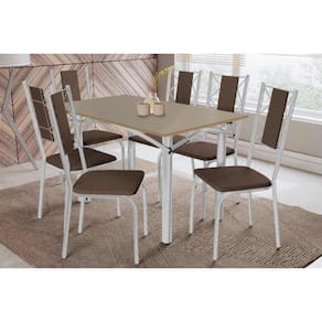 Sala de Jantar Completa Elba Tampo Madeirado c/ Vidro 120cm e 6 Cadeiras Lisboa Cromada/Freijo Bronze - Courano Marrom - Kappesberg