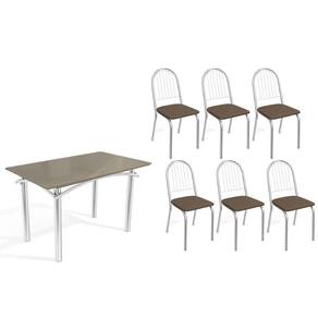 Sala de Jantar Completa Elba Tampo Madeirado c/ Vidro 120cm e 6 Cadeiras Noruega Cromada/Freijo Bronze - Courano Marrom - Kappesberg