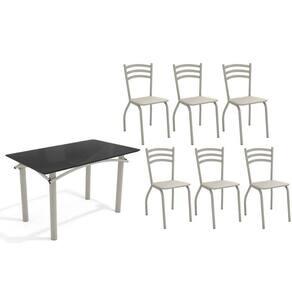 Sala de Jantar Completa Elba Tampo Madeirado c/ Vidro 120cm e 6 Cadeiras Portugal Niquel/Preto - Courano Bege - Kappesberg