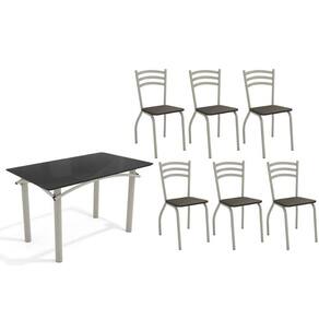 Sala de Jantar Completa Elba Tampo Madeirado c/ Vidro 120cm e 6 Cadeiras Portugal Niquel/Preto - Courano Marrom - Kappesberg Abaixo segue os produtos do KIT: Sala de Jantar Completa Elba Tampo Madeirado c/ Vidro 120cm e 6 Cadeiras Portugal Niquel/Preto - Courano Marrom - Kappesberg