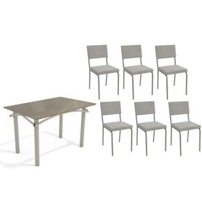 Sala de Jantar Completa Elba Tampo Madeirado c/ Vidro 120cm e 6 Cadeiras Zaria Niquel/Freijo Bronze - Boucle Cinza - Kappesberg Abaixo segue os produtos do KIT: Sala de Jantar Completa Elba Tampo Madeirado c/ Vidro 120cm e 6 Cadeiras Zaria Niquel/Freijo Bronze - Boucle Cinza - Kappesberg