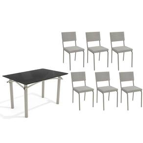 Sala de Jantar Completa Elba Tampo Madeirado c/ Vidro 120cm e 6 Cadeiras Zaria Niquel/Preto - Boucle Cinza - Kappesberg Abaixo segue os produtos do KIT: Sala de Jantar Completa Elba Tampo Madeirado c/ Vidro 120cm e 6 Cadeiras Zaria Niquel/Preto - Boucle Cinza - Kappesberg
