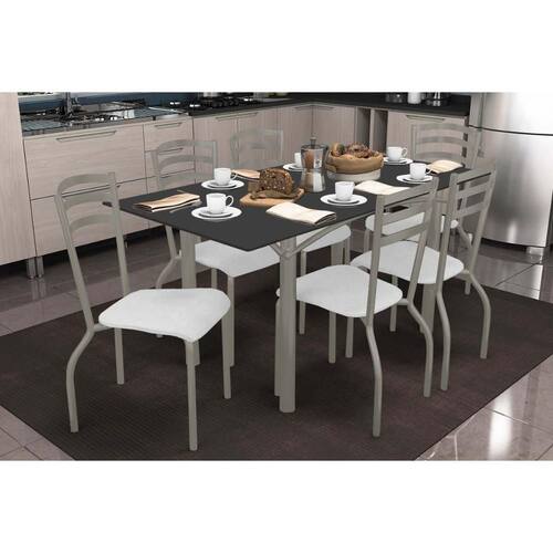 Sala de Jantar Completa Elba Tampo Madeirado c/ Vidro 160cm e 6 Cadeiras Portugal Niquel/Preto - Courano Branco - Kappesberg Abaixo segue os produtos do KIT: Sala de Jantar Completa Elba Tampo Madeirado c/ Vidro 160cm e 6 Cadeiras Portugal Niquel/Preto - Courano Branco - Kappesberg
