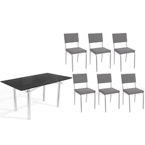 Sala de Jantar Completa Elba Tampo Madeirado c/ Vidro 160cm e 6 Cadeiras Zaria Cromada/Preto - Suede Cinza - Kappesberg Abaixo segue os produtos do KIT: Sala de Jantar Completa Elba Tampo Madeirado c/ Vidro 160cm e 6 Cadeiras Zaria Cromada/Preto - Suede Cinza - Kappesberg Tampo Mesa Sala de Jantar Madeirado c/ Vidro TA26 Retangular 90x160cm Preto/Preto - Kappesberg