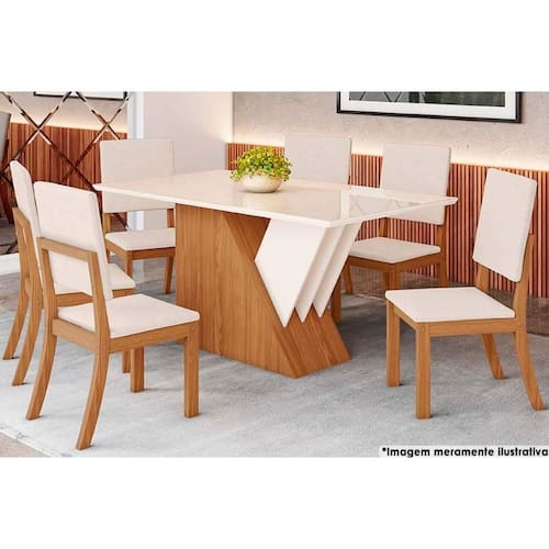 Sala de Jantar Completa Épic SC24 Tampo Madeirado c/ Vidro Canto Curvo 160x90cm e 6 Cadeiras Milla Nature/Veludo Light Linho - Henn Abaixo segue os produtos do KIT: Sala de Jantar Completa Épic SC24 Tampo Madeirado c/ Vidro Canto Curvo 160x90cm e 6 Cadeiras Milla Nature/Veludo Light Linho - Henn
