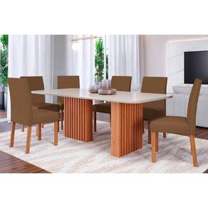 Sala de Jantar Completa Ester Tampo Madeirado c/ Vidro 180x90cm e 6 Cadeiras Maia Cinamomo/Off White - Nature/Suede Mascavo Chocolate - Cimol Abaixo segue os produtos do KIT: Sala de Jantar Completa Ester Tampo Madeirado c/ Vidro 180x90cm e 6 Cadeiras Maia Cinamomo/Off White - Nature/Suede Mascavo Chocolate - Cimol