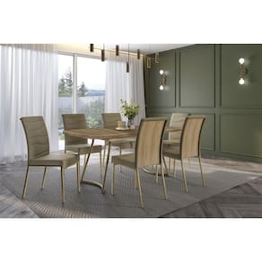 Sala de Jantar Completa Évora 1603 Aço c/ Tampo Madeirado 170x90cm e 6 Cadeiras Wave Dourado/Noce/Carvalho - Linho/ano Bamboo - Carraro Abaixo segue os produtos do KIT: Sala de Jantar Completa Évora 1603 Aço c/ Tampo Madeirado 170x90cm e 6 Cadeiras Wave Dourado/Noce/Carvalho - Linho/ano Bamboo - Carraro