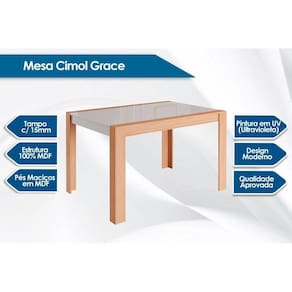 Sala de Jantar Completa Grace c/ Tampo Madeirado 90x90cm e 4 Bancos Kim Cinza/Nature - Cimol
