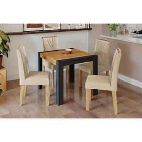 Sala De Jantar Completa Grace Tampo Madeirado 90x90cm E 4 Cadeiras Nicole Nature-madeirado/suede Nude - Cimol