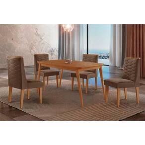 Sala de Jantar Completa Havana c/ Tampo Madeirado Canto Curvo 120x80cm e 4 Cadeiras Dafne Naturale - Suede Marrom - Rufato