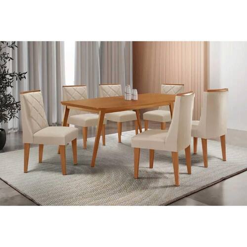 Sala de Jantar Completa Havana c/ Tampo Madeirado Canto Curvo 180x90cm e 6 Cadeiras Pietá Naturale - Suede Creme - Rufato Abaixo segue os produtos do KIT: Sala de Jantar Completa Havana c/ Tampo Madeirado Canto Curvo 180x90cm e 6 Cadeiras Pietá Naturale - Suede Creme - Rufato