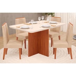 Sala de Jantar Completa Hera c/ Tampo Madeirado c/ Vidro 120x90cm e 4 Cadeiras Lia Freijó/Suede Kraft - DJ Móveis Abaixo segue os produtos do KIT: Sala de Jantar Completa Hera c/ Tampo Madeirado c/ Vidro 120x90cm e 4 Cadeiras Lia Freijó/Suede Kraft - DJ Móveis