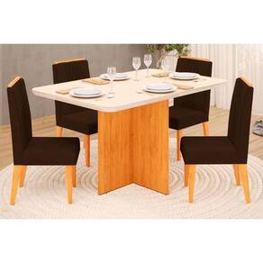 Abaixo segue os produtos do KIT: Sala de Jantar Completa Hera Tampo Madeirado c/ Vidro Reto 120x90cm e 4 Cadeiras Lia Cedro/Off White - Suede Moca - DJ Móveis