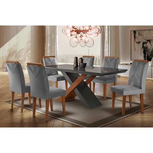 Sala De Jantar Completa Imperatriz Tampo Madeirado C/ Vidro Reto 180x90 E 6 Cadeiras Amsterdã Imbuia/grafite - Suede Grafite - Rufato