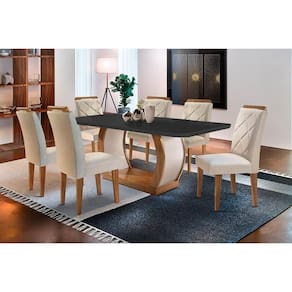 Sala de Jantar Completa Jade Tampo Madeirado c/ Vidro Curvo 180x90 e 6 Cadeiras Melissa Imbuia - Veludo Creme - Rufato Abaixo segue os produtos do KIT: Sala de Jantar Completa Jade Tampo Madeirado c/ Vidro Curvo 180x90 e 6 Cadeiras Melissa Imbuia - Veludo Creme - Rufato