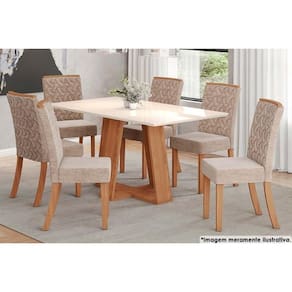 Sala de Jantar Completa Lins c/ Tampo Madeirado Reto 160x90cm e 6 Cadeiras Esther Nature/Creme - Henn