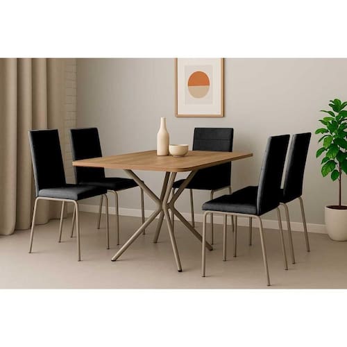 Sala de Jantar Completa Loire c/ Tampo de Madeira 1.60cm + 6 Cadeiras Amsterdã Niquel/Preto - Kappesberg Abaixo segue os produtos do KIT: Sala de Jantar Completa Loire c/ Tampo de Madeira 1.60cm + 6 Cadeiras Amsterdã Niquel/Preto - Kappesberg