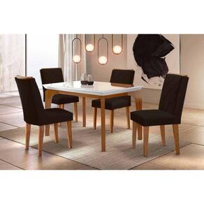 Sala de Jantar Completa Londrina c/ Tampo Madeirado c/ Vidro Canto Curvo 120x80cm 4 Cadeiras Pietá Naturale/Off White - Suede Marrom - Rufato Abaixo segue os produtos do KIT: Sala de Jantar Completa Londrina c/ Tampo Madeirado c/ Vidro Canto Curvo 120x80cm 4 Cadeiras Pietá Naturale/Off White - Suede Marrom - Rufato