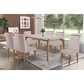 Sala de Jantar Completa Londrina c/ Tampo Madeirado c/ Vidro Canto Curvo 180x90cm e 6 Cadeiras Pietá Naturale/Off White - Linho Bege - Rufato Abaixo segue os produtos do KIT: Sala de Jantar Completa Londrina c/ Tampo Madeirado c/ Vidro Canto Curvo 180x90cm e 6 Cadeiras Pietá Naturale/Off White - Linho Bege - Rufato