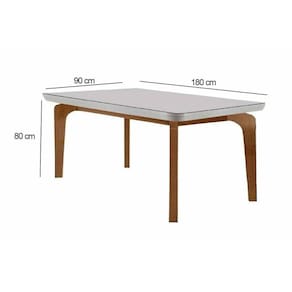 Mesa de Sala Jantar Londrina c/ Tampo 180x90cm Madeirado Vidro Canto Curvo - Imbuia/Off White - Rufato