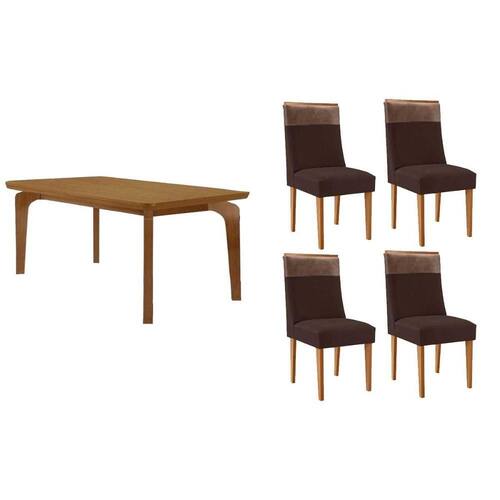 Sala de Jantar Completa Londrina c/ Tampo Madeirado Canto Curvo 120x80cm e 4 Cadeiras Jaspe Naturale - Suede Marrom - Rufato Abaixo segue os produtos do KIT: Sala de Jantar Completa Londrina c/ Tampo Madeirado Canto Curvo 120x80cm e 4 Cadeiras Jaspe Naturale - Suede Marrom - Rufato