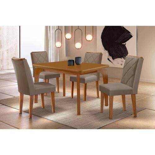 Sala de Jantar Completa Londrina c/ Tampo Madeirado Canto Curvo 120x80cm e 4 Cadeiras Pietá Naturale - Corano Capuccino - Rufato Abaixo segue os produtos do KIT: Sala de Jantar Completa Londrina c/ Tampo Madeirado Canto Curvo 120x80cm e 4 Cadeiras Pietá Naturale - Corano Capuccino - Rufato