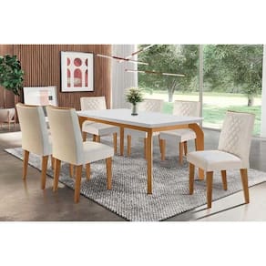 Sala de Jantar Completa Londrina c/Tampo Madeirado Canto Reto 180x90cm e 6 cadeiras Jade Imbuia - Veludo Creme - Rufato