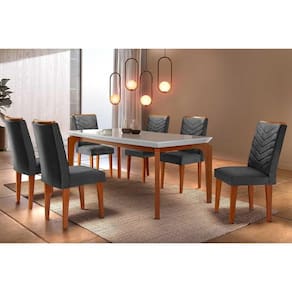 Sala de Jantar Completa Londrina c/ Tampo Madeirado Canto Reto 180x90cm e 6 cadeiras Londrina Imbuia - Veludo Grafite - Rufato