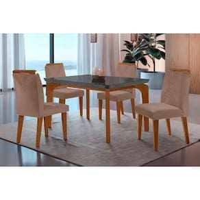 Sala de Jantar Completa Londrina c/ Tampo Madeirado Vidro Canto Curvo 120x80cm e 4 cadeiras Amsterdã Imbuia/Grafite - Suede Capuccino - Rufato