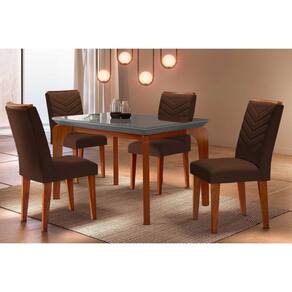 Sala de Jantar Completa Londrina c/ Tampo Madeirado Vidro Canto Reto 120x80cm e 4 cadeiras Londrina Imbuia/Grafite - Veludo Marrom - Rufato