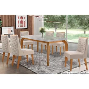 Sala de Jantar Completa Londrina c/ Tampo Madeirado c/ Vidro 180x90cm e 6 Cadeiras Dafne Capuccino/Suede Creme - Rufato Abaixo segue os produtos do KIT: Sala de Jantar Completa Londrina c/ Tampo Madeirado c/ Vidro 180x90cm e 6 Cadeiras Dafne Capuccino/Suede Creme - Rufato