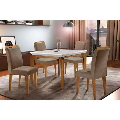 Sala de Jantar Completa Londrina Tampo Madeirado c/ Vidro 120cm + 4 Cadeiras Athenas Imbuia/Animale Chocolate - Rufato Abaixo segue os produtos do KIT: Sala de Jantar Completa Londrina Tampo Madeirado c/ Vidro 120cm + 4 Cadeiras Athenas Imbuia/Animale Chocolate - Rufato