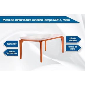 Produto: Mesa de Sala Jantar Londrina + Tampo Madeirado Vidro Reto 120x80cm Imbuia/Off White - Rufato