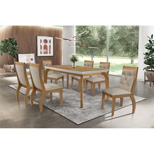 Sala de Jantar Completa Londrina Tampo Madeirado c/ Vidro 180cm + 6 Cadeiras Ágata Imbuia/Bege Turim - Rufato Abaixo segue os produtos do KIT: Sala de Jantar Completa Londrina Tampo Madeirado c/ Vidro 180cm + 6 Cadeiras Ágata Imbuia/Bege Turim - Rufato Mesa de Sala Jantar Londrina + Tampo Madeirado Vidro 180x90cm Imbuia - Rufato