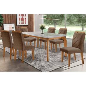 Sala De Jantar Completa Londrina Tampo Madeirado C/ Vidro 180cm + 6 Cadeiras Melissa Imbuia/chocolate Capuccino - Rufato